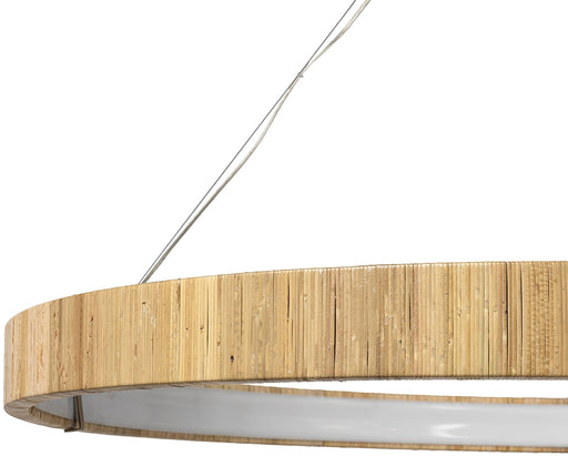 View full detailsGIBSON CHANDELIER, LINEAR Fully adjustable integrated LED chandelier with hand-wrapped cane matting in a natural rattan finish accented with brass...