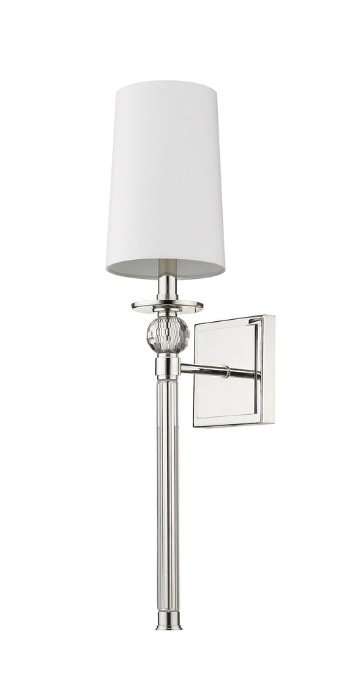 View full detailsSophisticated and tasteful design elements blend polished nickel finish steel and crystal accents with a fresh white fabric shade, making this sing...
