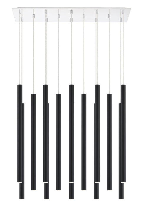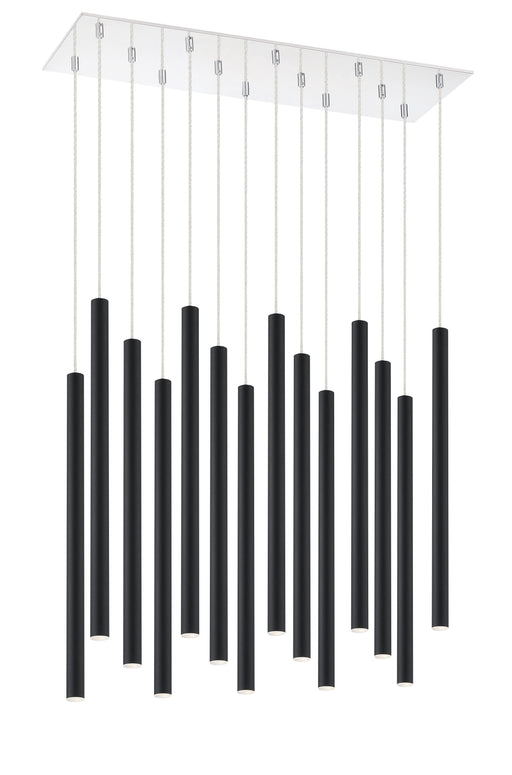 Celebrate modern sculptural style with the windchime-inspired silhouette of this fourteen-light pendant light. In matte black, the elongated shapes...