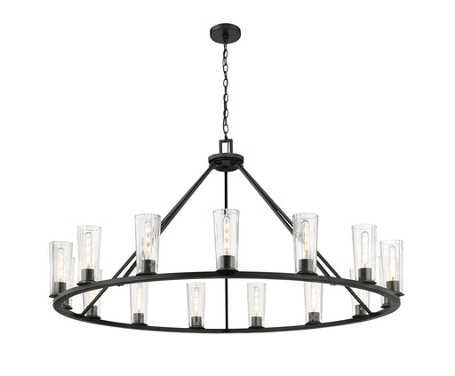 View full detailsChic tapering glass shades dot a classic ring frame to create the impressive silhouette of an industrial 15-light chandelier. Tubular bulbs add cha...