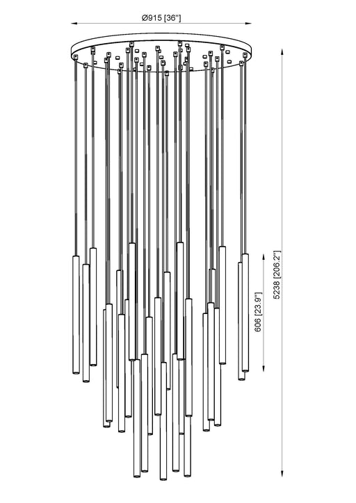 View full detailsSlim cylindrical housings create a compelling silhouette as they're tightly clustered on this modern 27-light chandelier. Casting bright, bold illu...
