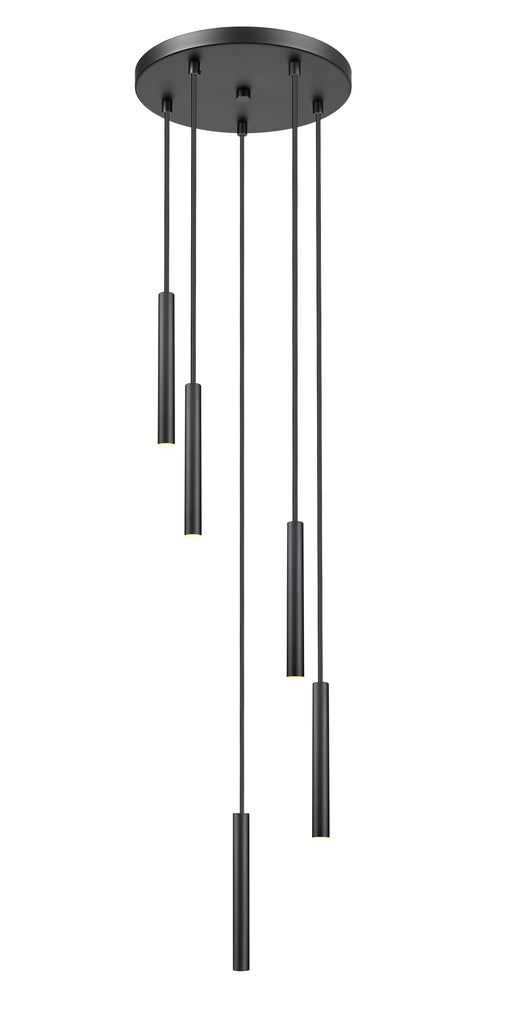 View full detailsA modern five-light LED chandelier features a staggered, spiraling fall of slim lights, creating a chic silhouette for your living space. From the ...