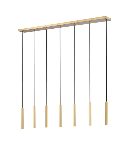 View full detailsA modern gold finish sets a refined, inviting tone for this contemporary seven-light linear chandelier. Featuring energy efficient LED lights in sl...