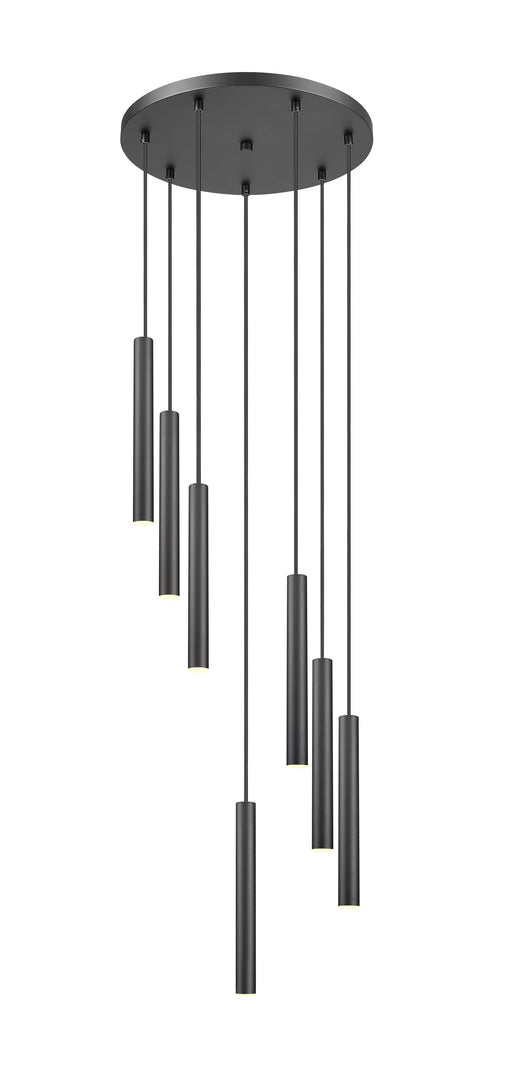 View full detailsThe instant drama of a spiraling fall of lights and a matte black finish highlight this modern seven-light chandelier. Featuring integrated LED lig...