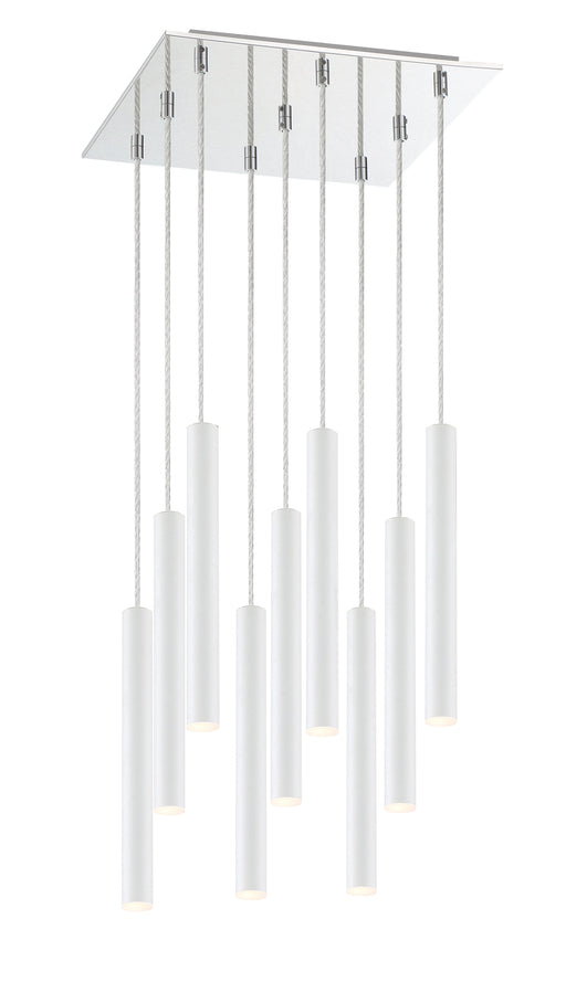 View full detailsThe radiant charm of this nine-light pendant light is full of clean lines. Matte white celebrates sleek style with elongated shapes and a windchime...