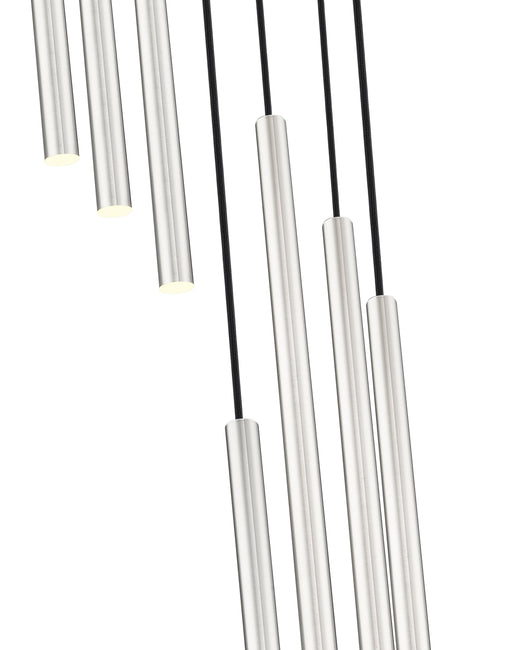 View full detailsSlim cylindrical housings create a compelling silhouette as they're tightly clustered on this modern 27-light chandelier. Casting bright, bold illu...