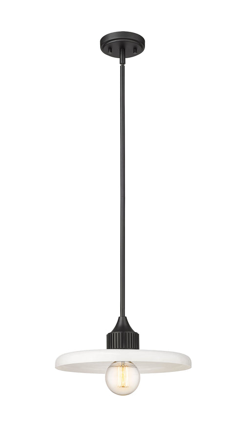 View full detailsA disc of smooth, glossy opal glass diffuses the illumination from this modern one-light pendant. Dramatic in any room, the fixture pairs a crisp m...