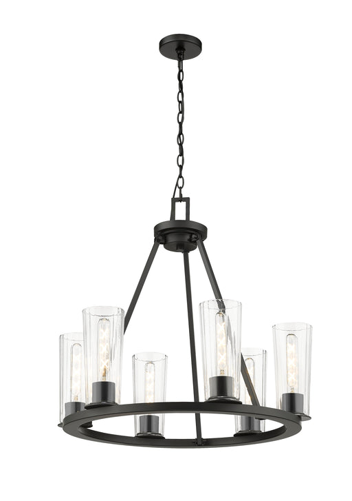 View full detailsCreate a sense of intimacy over a dining table or seating group with an industrial six-light ring chandelier from the Titus collection. In matte bl...