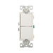 Eaton commercial grade combination switch, auto-grnd, Decorator, #14 - #12 AWG, 15A, resi, comm, 120/277V, bk and sd wiring, Rocker, Maint closure, Screw, Brass, wht, -20-60?C, (1) 1-pole, (1) 3-way, dplx, thermoplas, polycrb, PVC